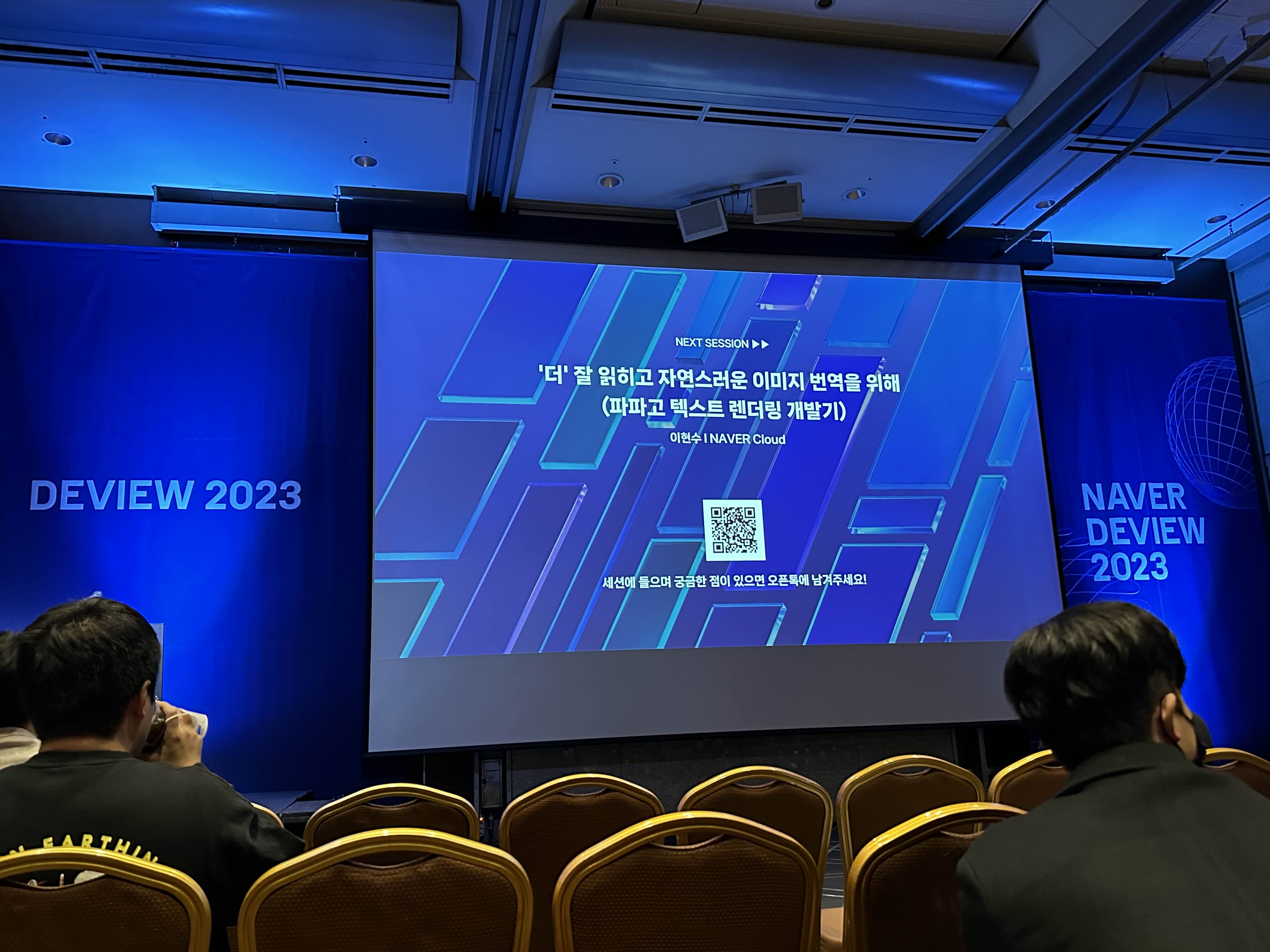 로 이루어지는데, OCR 기술과 HTS 기술에 대해서는 이전 deview에서 이미 자세히 다루었기 때문에, 이번 세션에서는 Inpainting(원래 이미지에 있는 글자를 지우기)와 Rendering(새롭게 번역한 글자를 그 이미지 위에 올리는 작업)에 대해 자세히 다루었다.