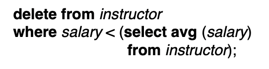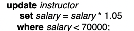 원하는 튜플의 값을 갱신시킬 수 있다. 예를 들어 교수의 월급이 인상되었다고 가정했을 때, 다음과 같이 적으면 모든 튜플에 대해 갱신이 이루어질 것이다.