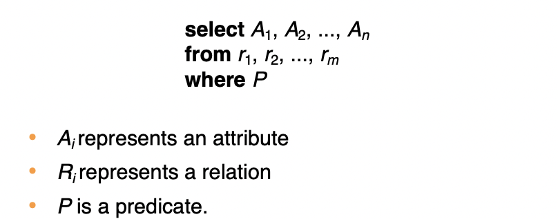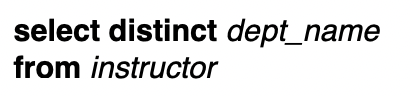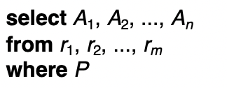 select문을 query문이라고 한다. 다음과 같은 형식을 갖는다. 쿼리문의 결과는 relation이다.