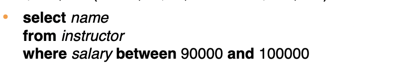 + between : comparison operator이다. 다음과 같이 사용할 수 있다.