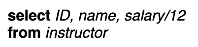 select은 query의 결과에서 원하는 속성들을 열거한다. (relational algebra에서 projection operation과 유사하다.)