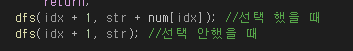 dfs(idx + 1, str + num[idx]); //선택 했을 때