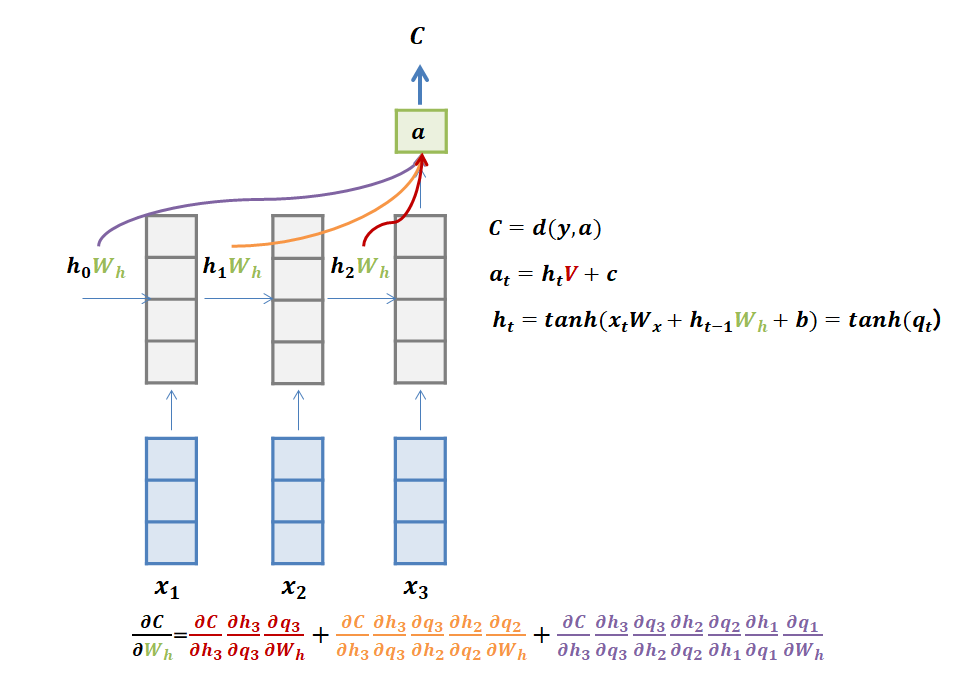 BPTT는 RNN 구조에서 기울기를 계산할 때 사용하는 용어이다. 다른 역전파 과정과 거의 유사하나 시간의 흐름에 따라 처리되는 sequential data의 특성을 반영한 용어라고 할 수 있다.