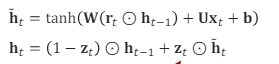 LSTM에서는 f, i 두개의 gate로 관리했었는데, 여기서는 한개의 게이트를 (1-z), z로 사용한다.