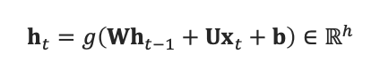 - 각 단어에 대한 시퀀스를 Xt로 표현한다. 즉 X1는 첫 번째 단어, X2는 두 번째 단어 … 를 의미한다.