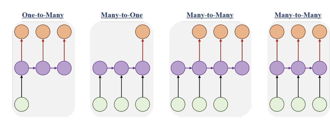 RNN 아키텍쳐에는 다음과 같은 종류가 있다.