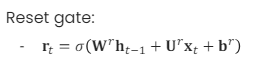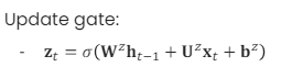 LSTM에서 input gate, forget gate를 update gate로 합쳤다고 생각하면 된다.
