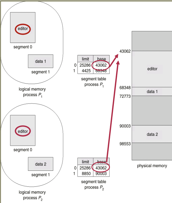 같은 segment 주소값을 가리킴으로써 공유할 수 있다.