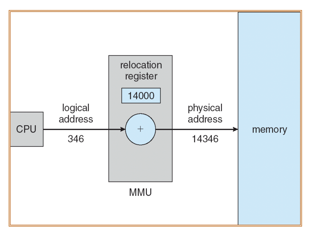 user process에서 생성되는 각각의 register + relocation register (재배치 레지스터) => 물리적 메모리주소