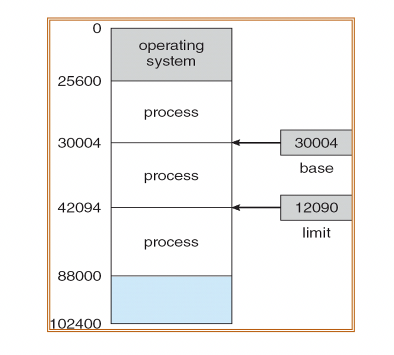 base register은 시작 주소를, limit rester는 프로세스의 크기를 가리킨다.