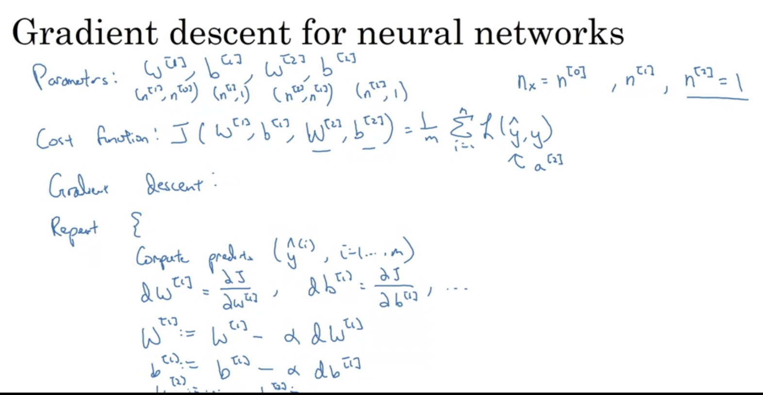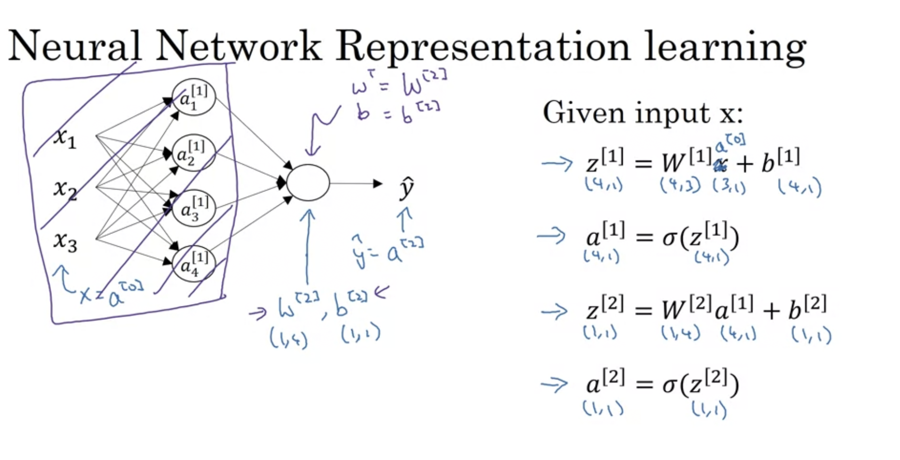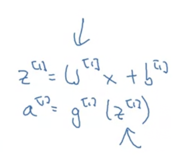 hideen layer → w, b와 연관됨 (w[1], b2[1])