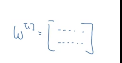w1[1]T값들은 모두 행렬 벡터가 되므로, 레이어 내의 노드가 다른 경우 수직으로 쌓을 수 있다. (vertically stack)