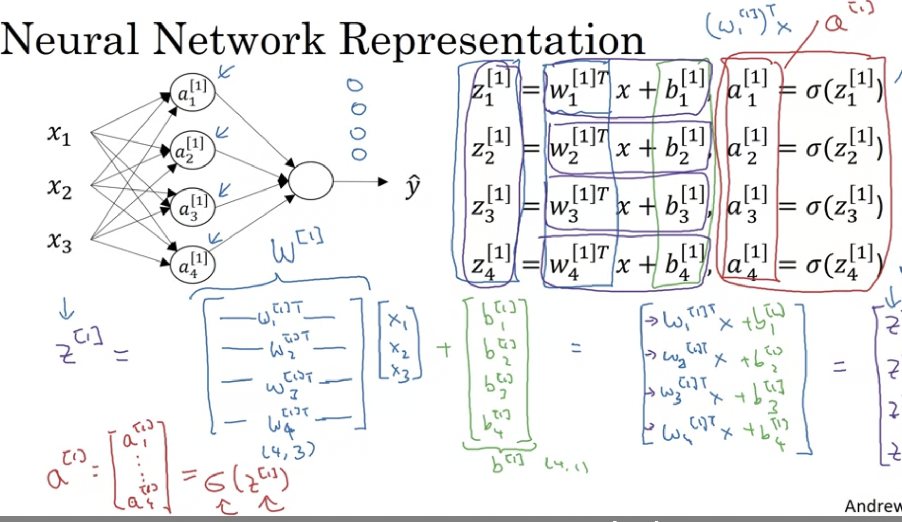 벡터화로 뉴럴 네트워크 구성한 모습은 위와 같다. 다음 강의에서는 이것이 어떻게 가능한지 살펴볼 것이다.