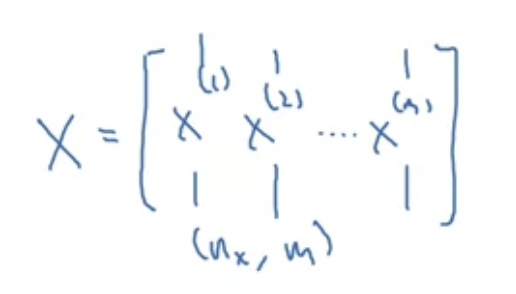 nx개의 입을갖고 있는 훈련 예제가 m개있을 때, 다음과 같은 모양이 가능할 것이다. (열벡터를 차곡차곡 옆으로 쌓음)