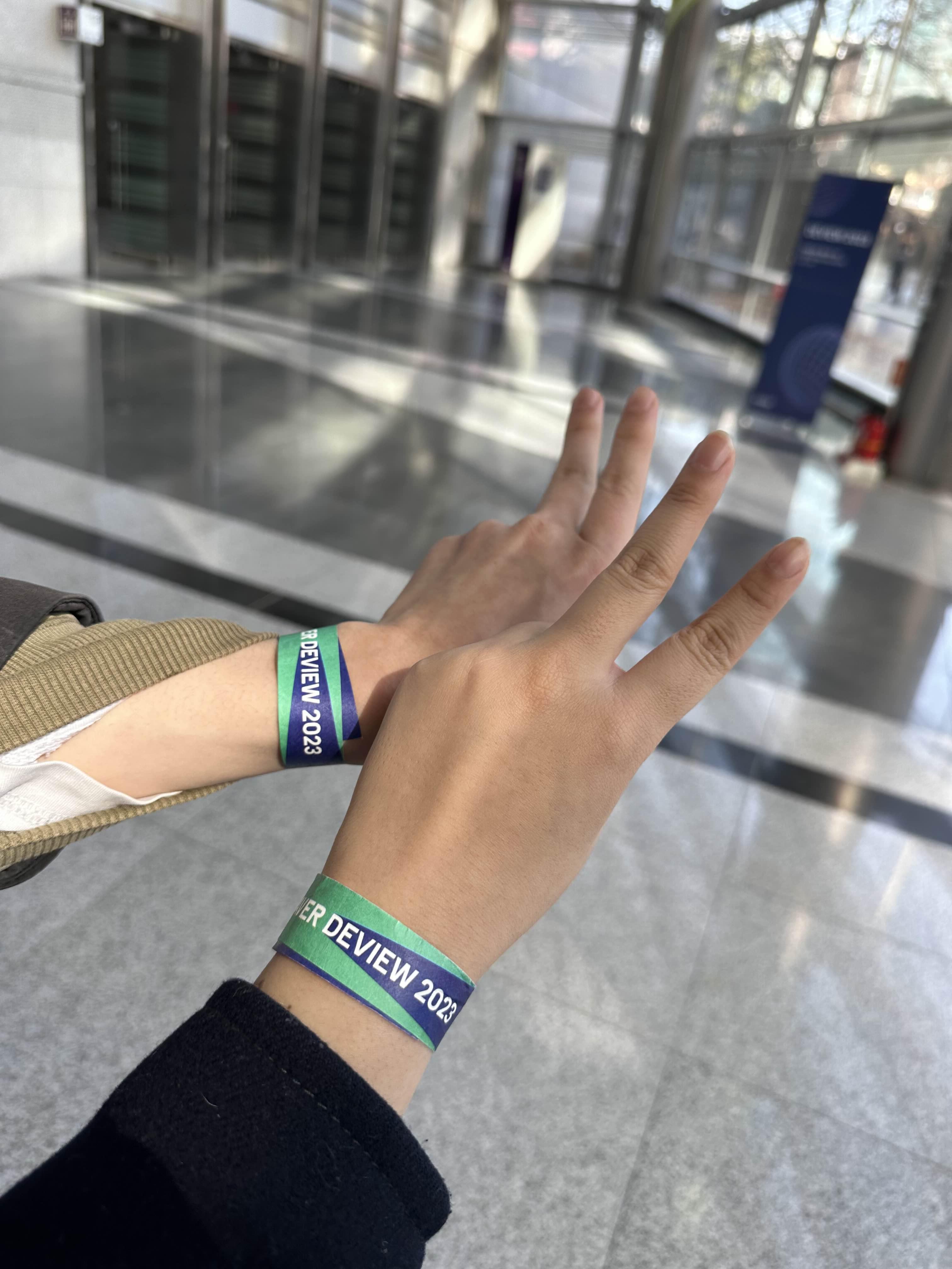 입장할 때 종이팔찌를 나눠주고 세션에 들어갈 때마다 팔찌로 확인을 하였다.웰컴키트와 같은 기념품으로는 가방, 키캡 몇가지, 초콜릿, 물 정도였다. 공짜로 가서 그런지 이정도만 받아도 기분이 좋아졌다.